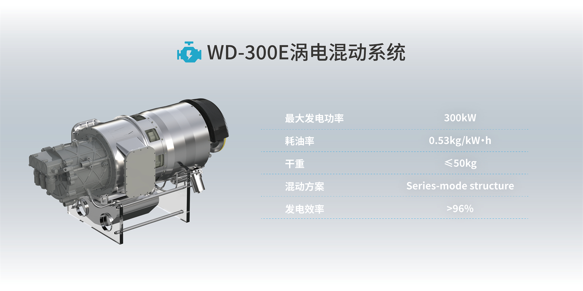 WD-300E涡电混动系统基于WZ-180涡轴发动机现有技术基础开发研制。该系统采用串联式架构,由发电、储能、能源分配和电推进等子系统组成。